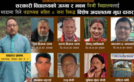 ६सरकारी विद्यालयको जग्गा निजी बोर्डिङलाई भाडामा दिने वडाध्यक्षसहित ८ जना विरुद्ध मुद्दा दायर