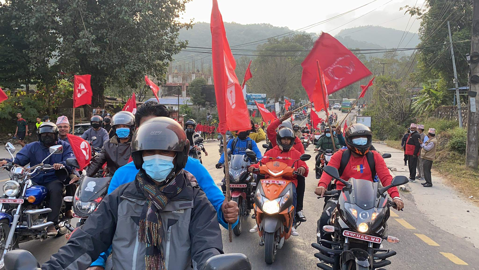 पोखराको पृथ्वीचोकबाट शुरु भएको ¥याली सभागृहचोक हुँदै चिप्लेढुङ्गा, सिदार्थचोक, जिरो किलो मिटर, हल्लनचोक, लेकसाईड, मिलनचोक, एयरपोर्ट परिक्रमा गर्दै पृथ्वी राजमार्ग अन्तर्गत अमरसिंह चोक, बिजयपुल, बुढिबजार, अर्घौ, तालचोकहुँदै शिशुवा चोकमा पुगी कोण सभामा परिणत भएको थियो ।