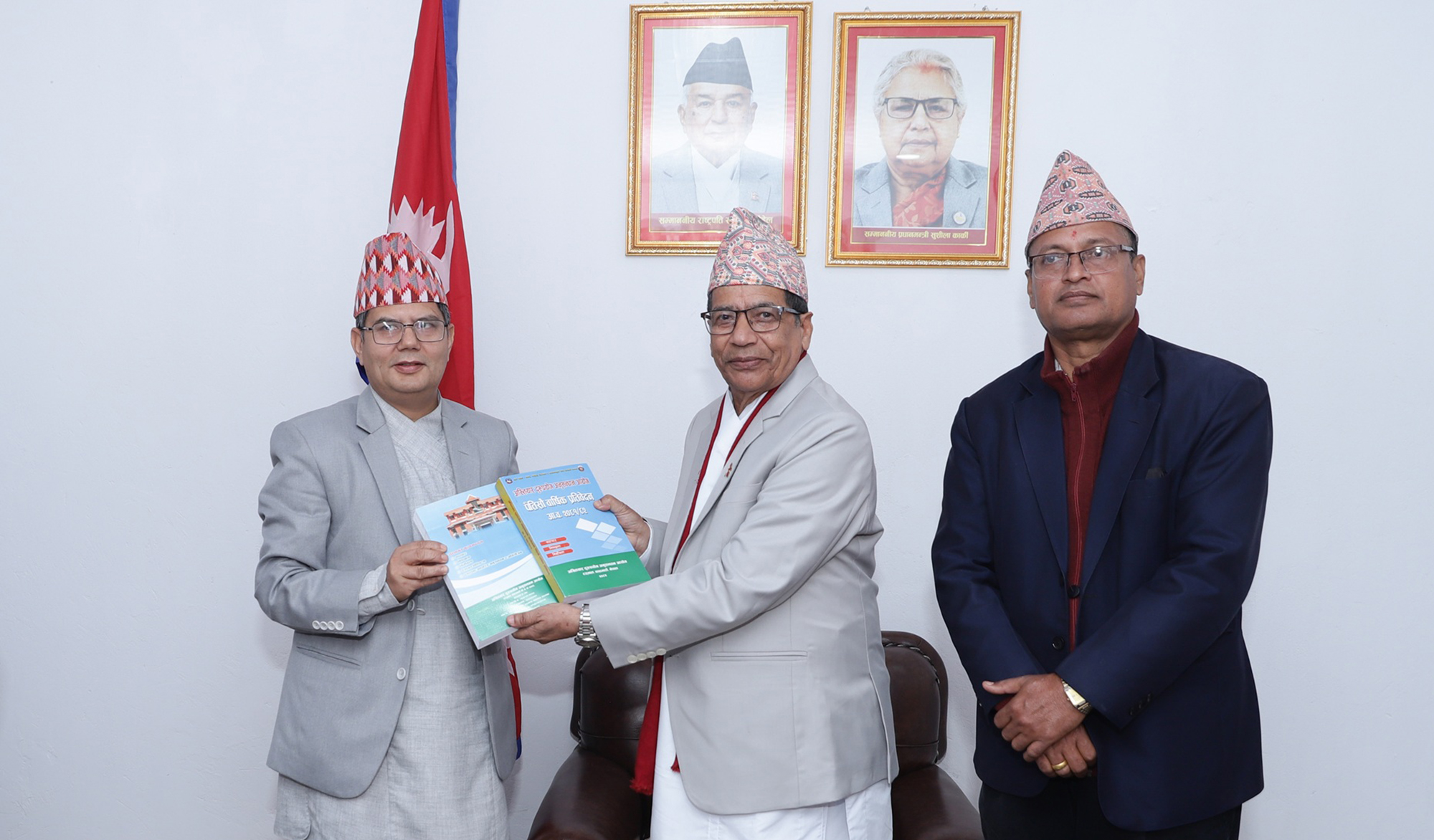 आयोगका पोखरा कार्यालय प्रमुख डा. नारायणप्रसाद रेग्मीले नेपालको संविधानको धारा २९४ को उपधारा (३) बमोजिम शुक्रबार प्रदेश प्रमुख भट्टसमक्ष प्रतिवेदन हस्तान्तरण गरेका हुन् ।