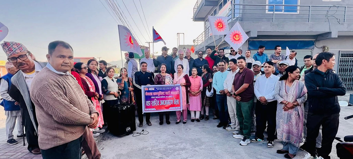 नेकपा एमालेले शनिबार दिउँसो पोखरा–५, प्रस्र्याङ्गमा आयोजना गरेको वडास्तरीय जनजागरण कार्यक्रम ।