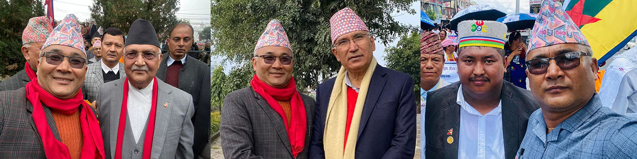 एमालेका अध्यक्ष केपी शर्मा ओली, विष्णुप्रसाद पौडेल र बाटुलचौर लिच्ची बगान काण्डका चर्चित विचौंलिया सुजन लामाका साथमा सफल सहकारी ठगीमा संलग्न गणेश श्रेष्ठ ।