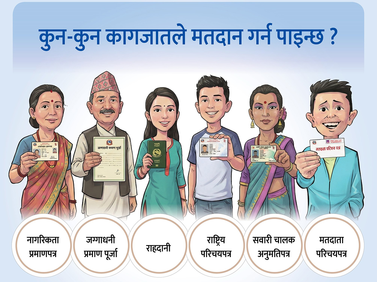 २मतदाताले परिचयपत्र नभए पनि ६ मध्ये एउटा कागजातको सक्कलप्रतिले मतदान गर्न पाउने