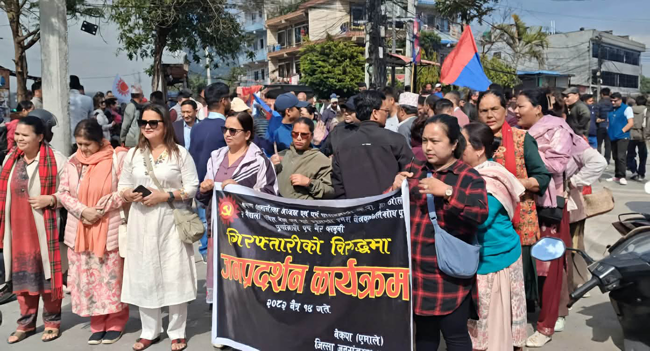 काठमाडौं, १४ चैत । नेकपा (एमाले) का अध्यक्ष तथा पूर्वप्रधानमन्त्री केपी शर्मा ओलीको पक्राउको विरोधमा पार्टीका कार्यकर्ताहरू देशव्यापी रूपमा सडकमा उत्रिएका छन् । शनिबार पोखराको पृथ्वीचोकमा एमाले कार्यकर्ताहरूले कार्की आयोगको प्रतिवेदन जलाएर विरोध जनाएका थिए भने काठमाडौंमा प्रदर्शन उग्र बन्दै गएको थियो ।