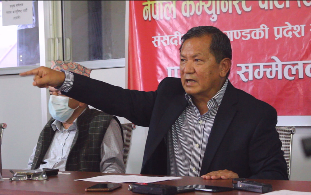 एमाले संसदीय दलका नेता एवं निर्वतमान मुख्यमन्त्री पृथ्वीसुब्बा गुरुङ आज शनिबार आयोजित पत्रकार सम्मेलनमा बोल्दै