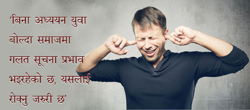 काठमाडौँ, १२ भदौ । नेपाली युवा सामाजिक सञ्जालमा ‘भाइरल’ हुने नाममा बिना अध्ययन बोल्ने गरेको पाइएको छ । ग्लोबल युथ पार्लियामेन्टले शुक्रबार साँझ यहाँ आयोजना गरेको भर्चुअल अन्तक्र्रियामा वक्ताले युवाले कतिपय मुद्दामा बिना अध्ययन र तथ्य बोल्ने तथा अफवाह फैलाउने गरेको बताइएको हो ।