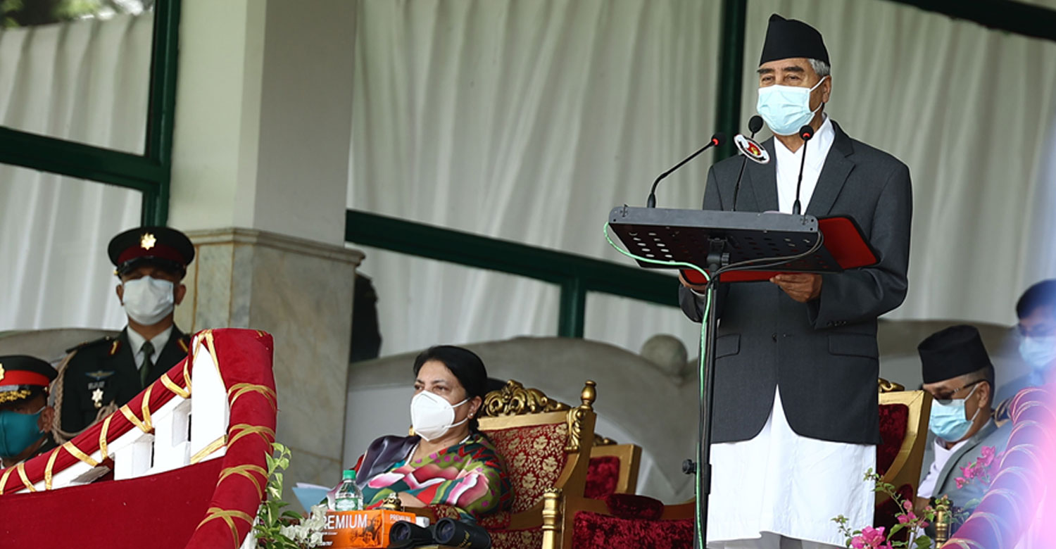 शताब्दीकै कहालीलाग्दो कोभिड–१९ को विश्वव्यापी महामारीबाट मानवजाति आक्रान्त भएको उल्लेख गर्दै प्रधानमन्त्री देउवाले यसबाट नेपाली नागरिकलाई बचाउन सरकार पूर्णरुपले प्रतिबद्ध एवं क्रियाशील रहेको बताए ।