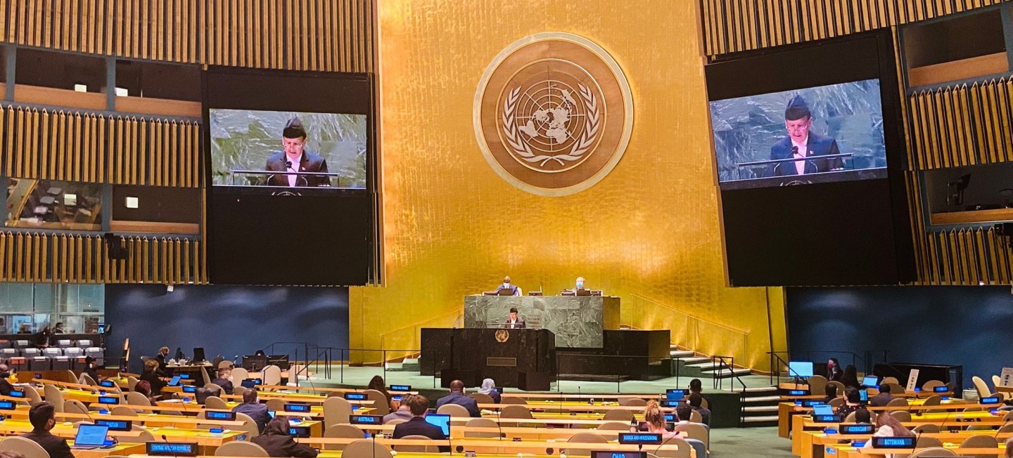 ‘आशाको माध्यमबाट प्रतिरोधका साथ कोभिड–१९ बाट पुनःस्थापना, दिगो पुनःनिर्माण, पृथ्वीको आवश्यकता पूरा गर्न तथा जनताका अधिकारलाई सम्मान गर्दै संयुक्त राष्ट्रसङ्घलाई पुनःजागृत गराउने’ विषयमा संयुक्त राष्ट्रसङ्घको ७६औँ महासभामा नेपालले जातीय बहुलसमाजहरूमा द्वन्द्वका जोखिम एवं तनाव अन्त्य गर्ने उत्तम औषधि लोकतन्त्र र वहुपक्षवाद भएका बताएको हो ।