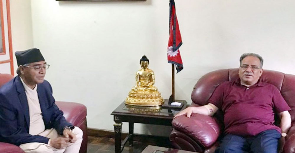 काठमाडाैं । नेकपा माओवादी केन्द्रका अध्यक्ष पुष्पकमल दाहाल ‘प्रचण्ड’ प्रधानमन्त्री शेरबहादुर देउवालाई भेट्न बालुवाटार पुगेका छन् । पार्टीको स्थायी समिति बैठक बस्नुअघि प्रचण्ड प्रधानमन्त्रीलाई भेट्न बुधबार बिहान बालुवाटार पुगेका हुन् । माओवादी केन्द्रको स्थायी समिति बैठक साढे १२ बजे बस्दैछ ।