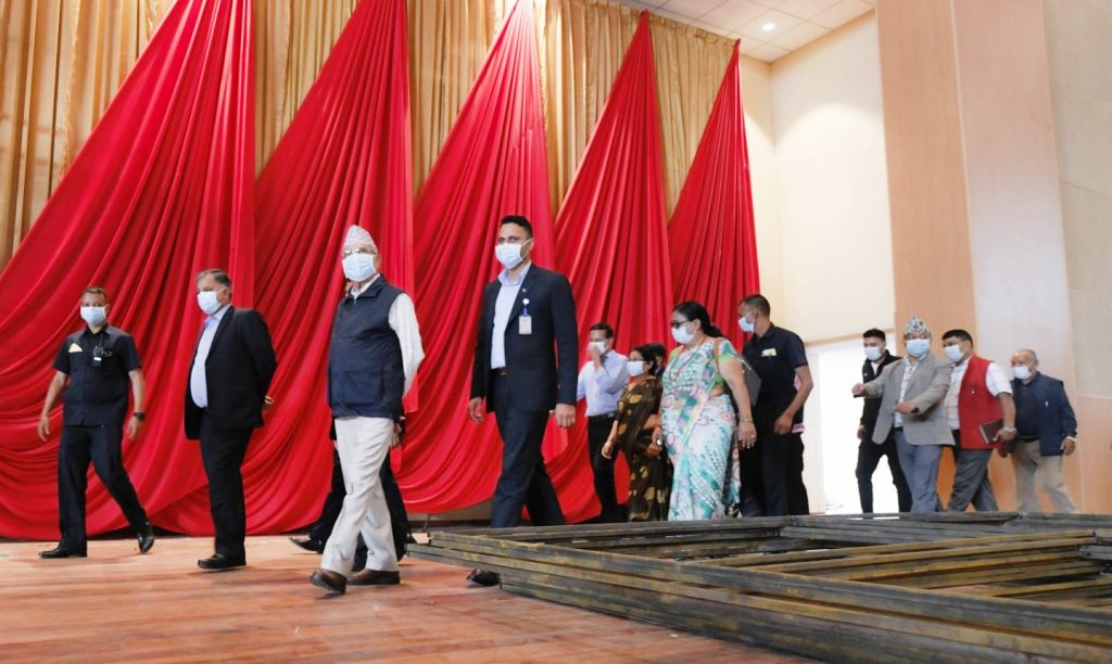 काठमाडौँ । नेकपा (एमाले) अध्यक्ष केपी शर्मा ओलीले ललितपुरको गोदावरीस्थित सनराइज हलको आज निरीक्षण गरेका छन् ।
