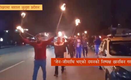 जेन–जीमाथि भएको दमनको निष्पक्ष छानबिनको माग गर्दै पोखरामा मशाल जुलुश प्रदर्शन