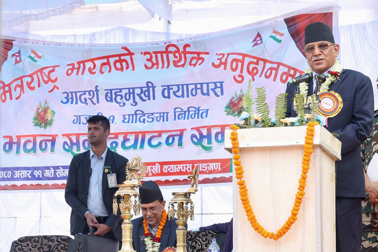 मलेखु, ११ असार । प्रधानमन्त्री पुष्पकमल दाहाल ‘प्रचण्ड’ले अहिलेकै गठबन्धनको सरकार पाँच वर्ष चल्ने बताउनुभएको छ । धादिङको गजुरीस्थित आदर्श बहुमुखी क्याम्पसको नवनिर्मित भवनको आज उद्घाटनका क्रममा प्रधानमन्त्री प्रचण्डले वर्तमान […]