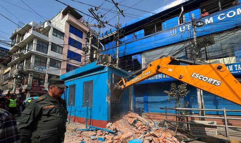 महानगरले भत्कायो पुरानो बसपार्कमा रहेको प्रहरी बिट