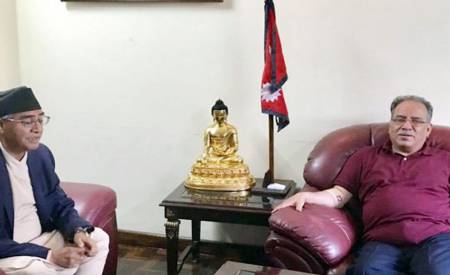 काठमाडाैं । नेकपा माओवादी केन्द्रका अध्यक्ष पुष्पकमल दाहाल ‘प्रचण्ड’ प्रधानमन्त्री शेरबहादुर देउवालाई भेट्न बालुवाटार पुगेका छन् । पार्टीको स्थायी समिति बैठक बस्नुअघि प्रचण्ड प्रधानमन्त्रीलाई भेट्न बुधबार बिहान बालुवाटार पुगेका हुन् […]