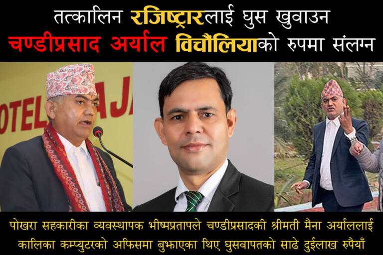 पोखरा सहकारीमा रजिष्ट्रारलाई घुस खुवाउन चण्डीप्रसाद अर्याल विचौंलियाको रुपमा संलग्न रहेको आरोप