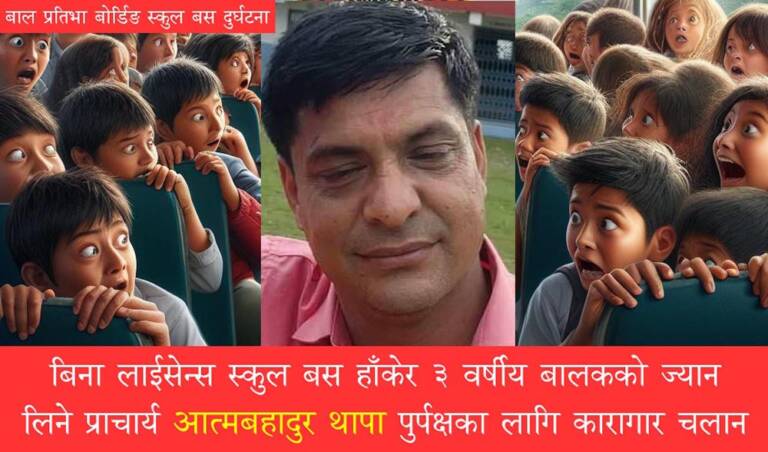 बिना लाईसेन्स स्कुल बस हाँकेर विद्यार्थीको ज्यान लिने प्राचार्य आत्मबहादुर पुर्पक्षका लागि कारागार चलान