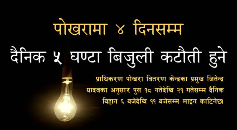 पोखरामा चार दिनसम्म दैनिक ५ घण्टा बिजुली कटौती हुने