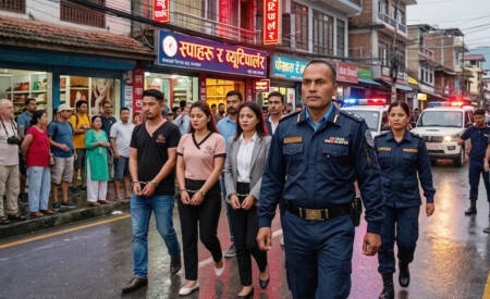 पोखरा, १३ चैत । पोखराको पर्यटकीय क्षेत्र लेकसाइडमा रहेका विभिन्न आठवटा स्पा तथा ब्युटी पार्लरहरूमा एकैंदिन छापामारी प्रहरीले सञ्चालक र कामदारसहित कुल १६ जनालाई पक्राउ गरेको छ। प्रहरीले लेकसाइडमा लुकेर […]