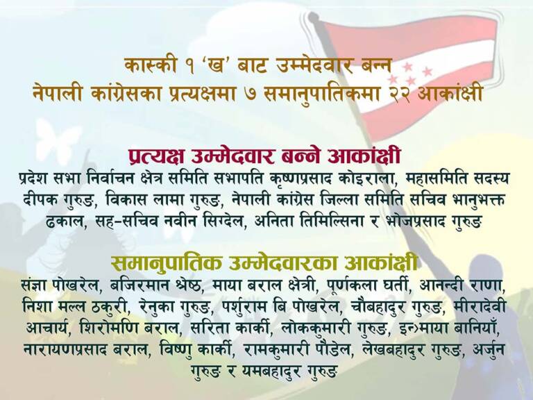 कास्की १ ‘ख’ बाट उम्मेदवार बन्न नेपाली कांग्रेसका प्रत्यक्षमा ७ समानुपातिकमा २२ आकांक्षी