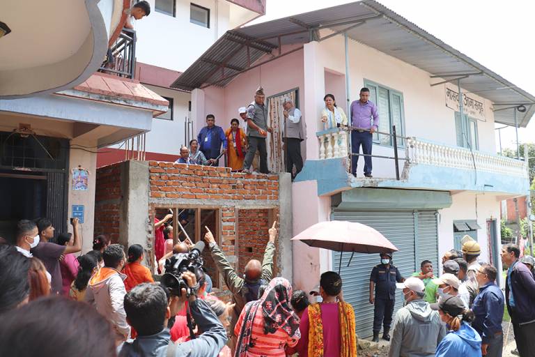 अटेर गरी बनाइएको मासबार आमा समूहको भवन भत्काउँदै महानगरपालिका