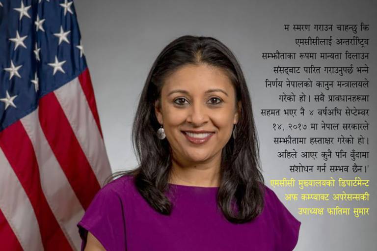 ‘एमसीसी सम्झौतामा संशोधन सम्भव छैन’ : उपाध्यक्ष फातिमा