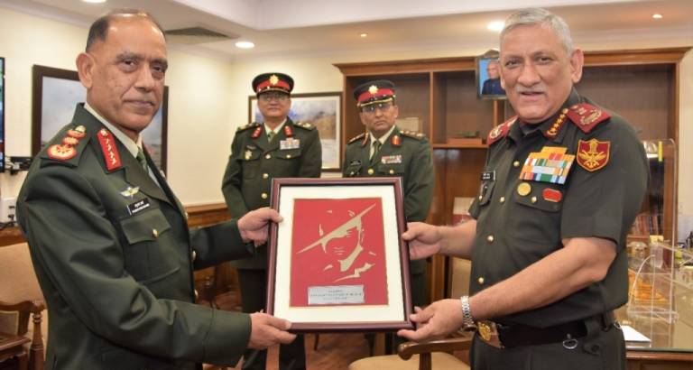 प्रधानसेनापति शर्मा र भारतीय चिफ अफ डिफेन्स स्टाफ रावतबीच भेट