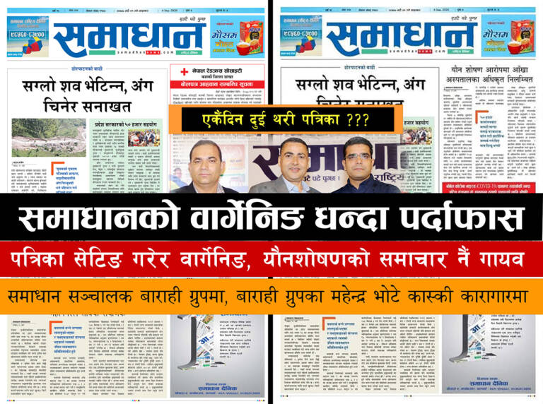 पोखरा, २९ असोज । पोखराको समाधान दैनिक पत्रिकामाथि ठगी, ब्ल्याकमेलिङ र पत्रकार आचारसंहिता उल्लङ्घनका गम्भीर आरोपहरू लाग्दैैं र पुष्टि पनि हुँदैं आईरहेका छन्। डन न्यूजले निरन्तर यो पत्रिकाका सञ्चालकहरूको अनैतिक […]