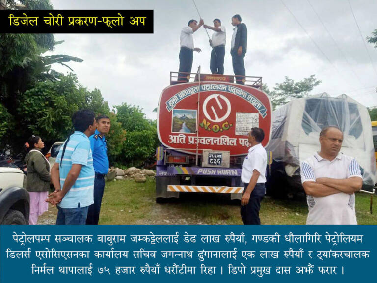 पोखरा, २५ भदौं । नेपाल आयल निगमको गण्डकी प्रादेशिक कार्यालय गगनगौंडा डिपो पोखराका डिजेल चोरी घटनाका मुख्य अभियुक्त तत्कालिन डिपोप्रमुख चितरञ्जन दास विरुद्ध जिल्ला अदालत कास्कीले आज पक्राउ पुर्जी जारी […]