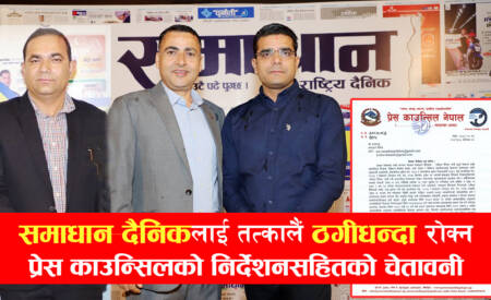 पोखरा, २५ असोज । प्रेस काउन्सिल नेपालले पोखराबाट नेकपा एमालेका नेताहरुबाट सञ्चालित समाधान दैनिकको ठगीधन्दाविरुद्ध छानबिन गरी पत्रिकालाई ‘राष्ट्रिय’ शब्द तत्काल हटाउन निर्देशन दिएको छ । यस्तो कार्य दोहोर्याए कडा […]