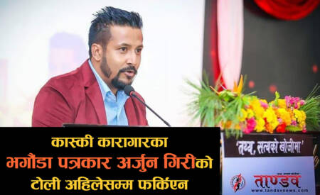 महेन्द्र भोटे कारागार फर्किए पनि ताण्डव न्यूजका सम्पादक भगौंडा अर्जुन गिरी, विजय लम्साललगायतका केदीहरु अझै फरार छन्। पोखरा, १५ असोज । कास्की कारागारका भगौंडा पत्रकार अर्जुन गिरीको टोली अहिलेसम्म कारागार […]