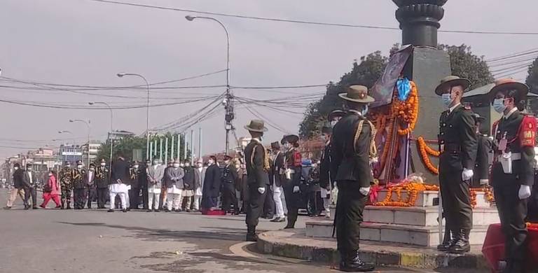 काठमाडौँ । पृथ्वीनारायण शाहको जन्मजयन्तीका अवसरमा सिंहदरबार अगाडि रहेको उनको शालिकमा राष्ट्रपति विद्यादेवि भण्डारीले माल्यार्पण गरेकी छन्। राष्ट्रिय एकता दिवस तथा ३०० औं पृथ्वी जयन्तीको अवसरमा राष्ट्रपति भण्डारीले मंगलबार सिंहदरबारको […]